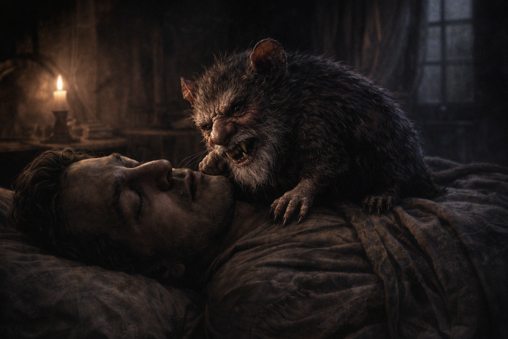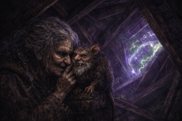 Brown Jenkin es posiblemente el familiar más perturbador jamás concebido en la literatura de terror. Mitad rata, mitad... algo profundamente equivocado. Una abominación que desafía las leyes de la naturaleza y la razón, sirviendo como compañero y cómplice de Keziah Mason, la bruja que dominó los ángulos del infierno.
